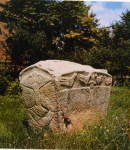 zvjezdice. Zvijezda je kao motiv likovnih umjetnosti široko rasprostranjena i susreće se od davnih vremena. Već je pomenuto da se zvijezda nalazi na babilonskim stelama. A. Škobalj je donio reprodukciju jednog babilonskog spomenika iz 1200. god. prije n. e., na kojem se vidi osmerokraka zvijezda. Viđamo ga na antičkim nadgrobnim stelama. Taj motiv je iz starog orijentalnog repeptoara ušao u starokršćansku umjetnost, kojim putem je prenesen u Evropu. Nalazi se na pred romaničkim, romaničkim i gotičkim crkvama. Vidimo ga i na starokršćanskim sarkofazima. Na nadgrobnim pločama gotičke crkve S. Maria Novella u Firenci, uz polumjesec i druge motive, nalaze se i zvijezde. Na nekim mađarskim kasnosrednjovjekovnim štitovima, npr. u Estergonu, nalaze se zvijezde. Mogu se navesti i brojni primjerci ovoga motiva u našim krajevima. Tako, zvijezde nalazimo na oltarskoj ploči iz crkve sv. Lovre u Pazdigradu kod Splita, zatim na fragmentima starohrvatskih ploča sa pleterom iz Knina, a onda na trouglastom zabatu, sa natpisom o knezu Mutimiru, iz crkve sv. Luke u Uzdolju kod Knina, kao i na ploči sa pleterom iz crkve sv. Mihajla u Stonu. Virovitu rozetu nalazimo na predromaničkom sarkofagu iz splitske katedrale. Uz polumjesec i sunce, zvijezda se često javlja na kršćanskim slikanim scenama Kristovog rođenja i uznesenja Bogorodice, zatim je nalazimo kao iluminaciju Pećkog četveroevanđelja (XIV v.) , a onda na zavjesi carskih dveri manastira Hilandara. Zvijezda je čest motiv na srednjovjekovnom novcu u Srbiji i Hrvatskoj, kao i na grobovima feudalaca u Hrvatskoj, Slavoniji i Dalmaciji. Postoje i drugi primjerci. Na bosanskohercegovačkom području zvijezde nalazimo kao plastične ukrase kasnoantičkih bazilika, zatim na drvetu, tekstilu i drugim starobosanskim umjetničkim predmetima. Važna je pojava zvijezde na bosanskom novcu, na bosanskom državnom grbu i na grbovima bosanske vlastele. P. Anđelić je ustanovio da bar dvije trećine bosanskih izbjeglica u Dalmaciji i drugim zemljama imaju zvijezdu kao heraldički znak. Zvijezda na stećcima je vrlo malo proučavana. M. Hoernes je smatrao da su zvijezde; i mjesec amblemi grbova bosanske vlastele, a slično mišljenje je izrazio i A. Benac.D. Sergejevski je zvijezdu svrstao u religiozne simbole, ali o tome ništa podrobnije nije rekao. A. Škobalj zvijezdi pridaje značenje slično polumjesecu, tj . da je stari slavenski paganski simbol obnavljanja života. U pojavi zvijezde, polumjeseca i krsta na stećcima on vidi miješanje stare slavenske dualističke vjere sa kršćanstvom.A. Solovjev u zvijezdi najčešće vidi predstavu sunca, koje se, prema manihejskom učenju, identifikuje sa Kristom. Inače, za sunce kaže da označava nebesku lađu koja prevozi pravedne duše na drugi svijet. Dosta je neobično mišljenje M. Wenzel, koja zvijezdu smatra ukrasom, a u nekim slučajevima (uz figuralne predstave) simbolom, kao npr. uz dva afrontirana konjanika, kada, kao u antičkim scenama Dioskura, zvijezda simbolizira božanstvo svjetlosti i mraka. Još je neobičnije mišljenje beogradskog etnologa P. Ž. Petrovića. On u tom motivu vidi predstavu ljudske glave, koja je nastala odbacivanjem nekih elemenata i u regresivnom procesu stilizacije, preko kružnog vijenca, postala zvijezda, odnosno rozeta. Mišlj enje Bešlagića je vrlo slično onome o polumjesecu. Iako će se zvijezda dalje proučavat , za sada se može reći da je ona u umjetničkoj primjeni u našim krajevima simbioza staroslavenskog paganskog kulta i kršćanske simbolike, a da je na stećke stigla kada je sva ta simboličnost bila već gotovo sasvim zaboravljena, zbog čega se motiv upotrebljavao kao jedna vrsta socijalne oznake privilegovane feudalne klase, i