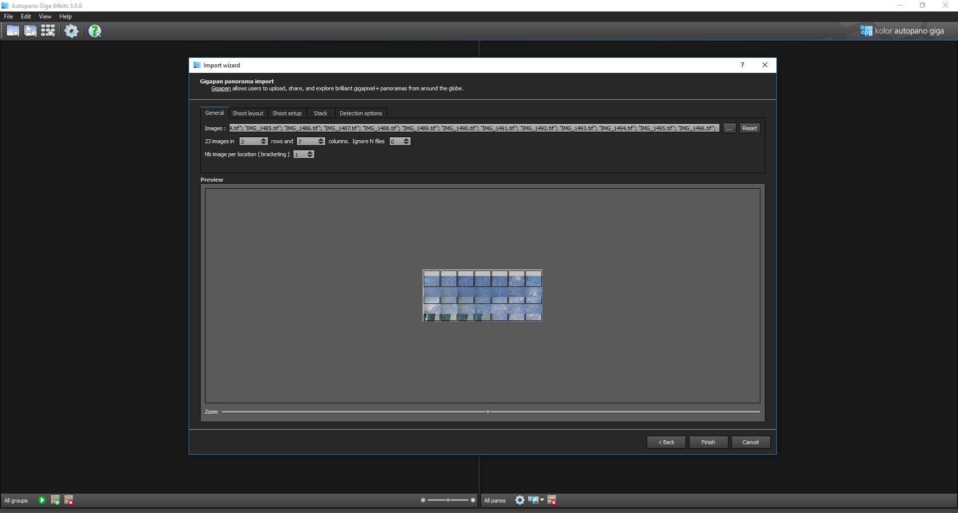 Napravljen je 21 snimak (3 reda po 7 snimaka, sa fokusom 85mm pri 2.8, sa po 2 min ekspozicije za svaki snimak, ISO 2000) različitih dijelova naše galaksije. Ti snimici su potom spojeni u jednu veliku sliku (korišten program Autopano Giga) veličine oko 2GB, i rezolucije 31370 x 17880. Ne treba ni spominjati da je za ovaj poduhvat potreban jak kompjuter.