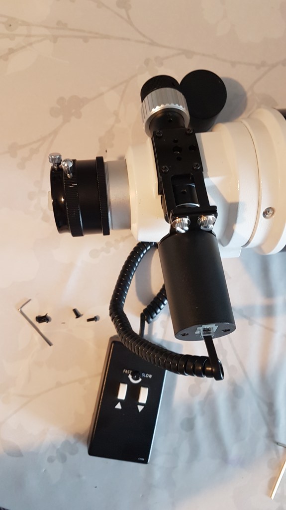 Ako želite preciznije fokusiranje tokom astrofotografske sesije, jedna od jeftinijih mogućnosti je ugradnja Skywatcher motora za fokuser na vaš SW refraktor. Dole su, ispod slika, opisani koraci kako sam to ja napravio. Naravno, ni ovaj put to nije moglo proći bez neke DIY varijante.
