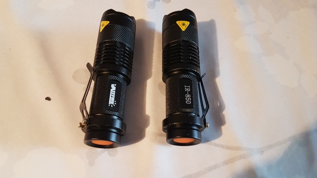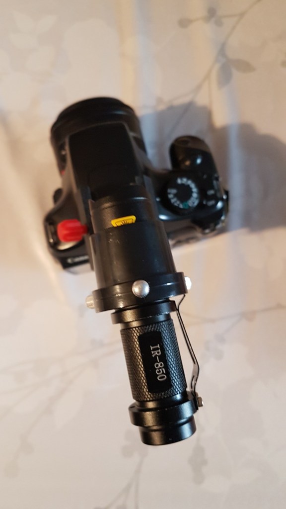 Ovi sistemi su generalno rel. skupi (jeftiniji od termalne optike) ali u kućnoj radinosti možete napraviti neke bazične sisteme, zavisno od mogućnosti. Meni je palo na um da iskoristim svoj modificirani (za IC dio svjetla) dSLR za neku vrstu aktivne noćne optike malog dometa (npr. čitanje mapi u potpunom mraku). Naime kod ovog aparata sam izvadio IC filter koji stoji ispred senzora, tako da on sada ima mogućnost posmatranja (liveview opcija) i snimanja u većem dijelu IC elektromagnentog spektra (IC fotografija je takođe zanimljiv hobi). Sa Ebay sam poručio dvije jeftine IC lampe (po 15 KM svaka) i nakačio ih posebnim adapterom na svoj Canon 1100D. Ove lampe imaju dosta mali domet (sa boljim IC lampama i domet bi bio dosta veći) ali mogu poslužiti za demonstraciju aktivne IC noćne optike npr. za djecu ili u školama. Dole je dato nekoliko slika ovog DIY sistema.