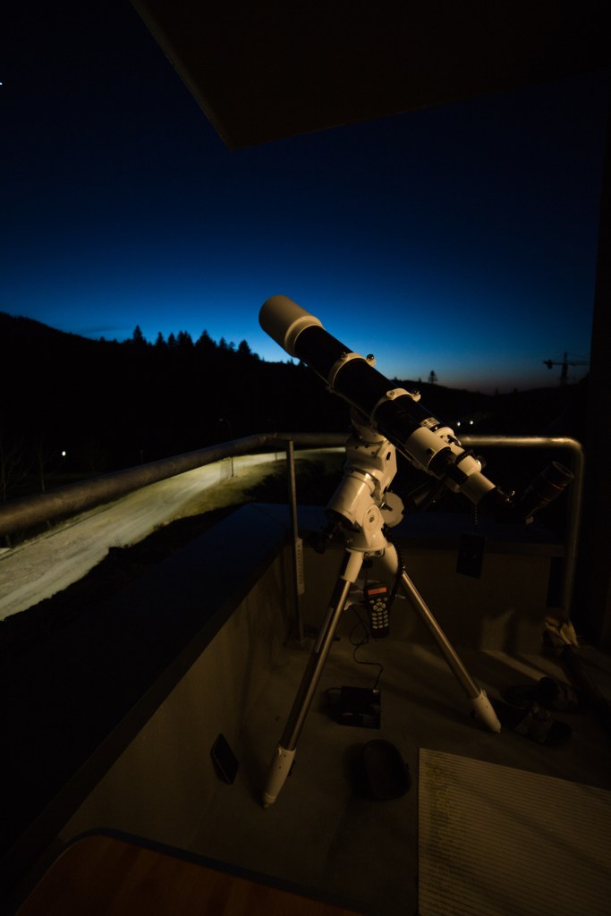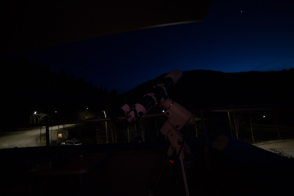 Ovih dana testirao sam i dosta druge opreme, sa namjerom da vidim koji setup je najviše prenosan (za snimanje na tamnijoj lokaciji) – npr. sa Star Adventurer, Synguider i sl. Zaključak je da za kvalitetno snimanje ništa ne može zamjeniti “teži” setup – npr. EQ6, teški stativ, Atik 383L mono, QHY i softverska podrška (Sequence Generator, PHD2). Jednostavno, potrebno je sakupiti što više fotona sa što manje šuma i pomjeranja ose postolja od pravca sjevera.