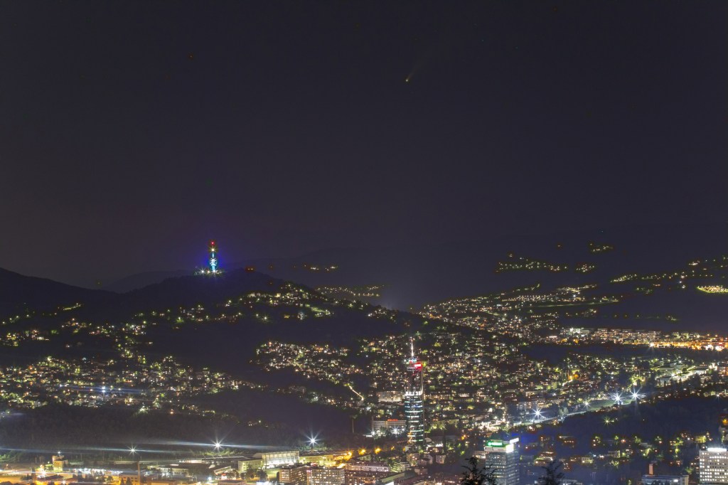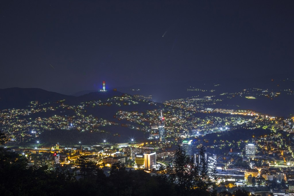 Nakon prethodna dva snimanja komete (sa Bjelašnice i sa Trebevića), sinoć smo Džan i ja okupili društvo, i, uz postivanje epidemioloskih mjera, sa rejona Zlatišta posmatrali kometu NEOWISE iznad grada.