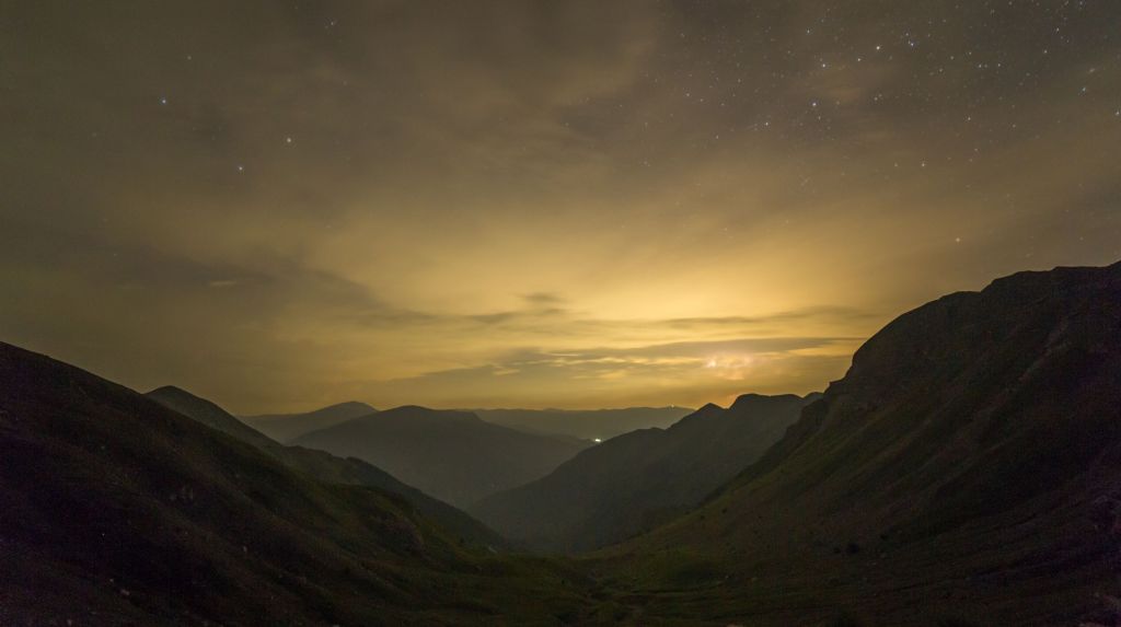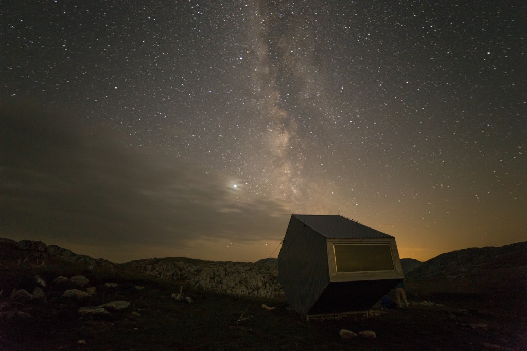 Radili smo i timelapse prividnog kretanja naše galaksije. Budući da je Mjesec izašao oko 1h (zadnja četvrt), na timelapse snimku se vidi postepeno povećanje osvjetljenosti neba i terena.
