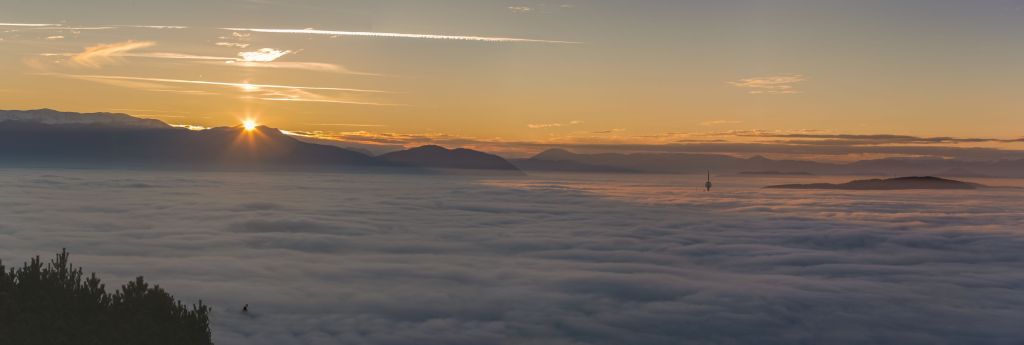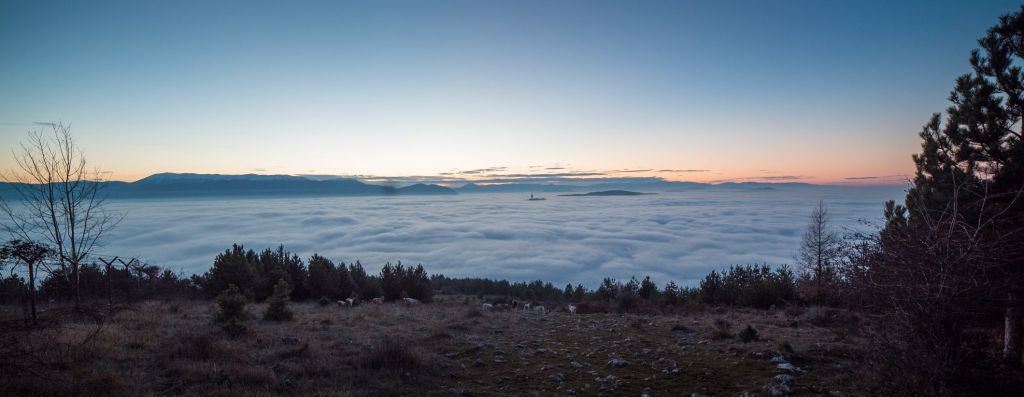 Sinoć smo malo snimali maglu iznad Sarajeva. Nevjerovatan prizor koji nikoga ne ostavlja ravnodušnim. Jedno more magle, a obronci Sarajeva izgledaju kao plaže. Snimali smo sa rejona Grdonja, u blizini Špicaste stijene (kod repetitora i Caffe105), a kada autom, sa puta prema Baricama, silazite prema ovoj lokaciji, imate osjećaj da silazite negdje na morsku obalu.