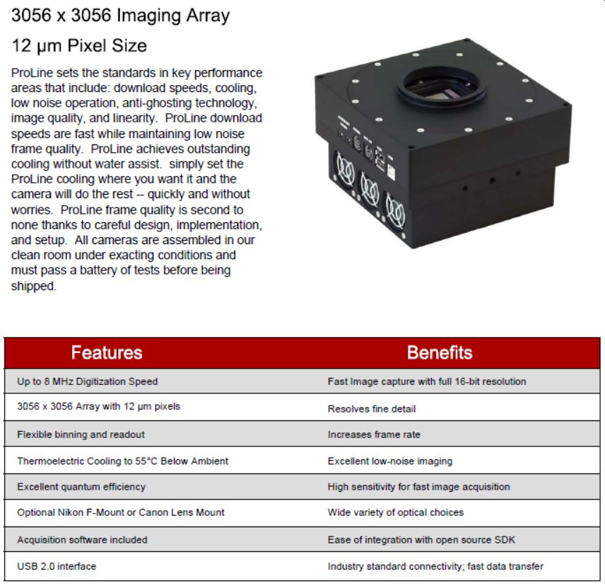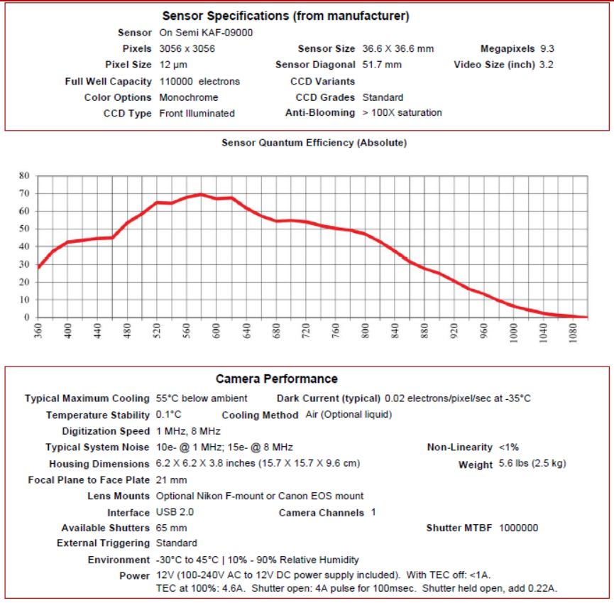 Dole su date karakteristike teleskopa i kamere.