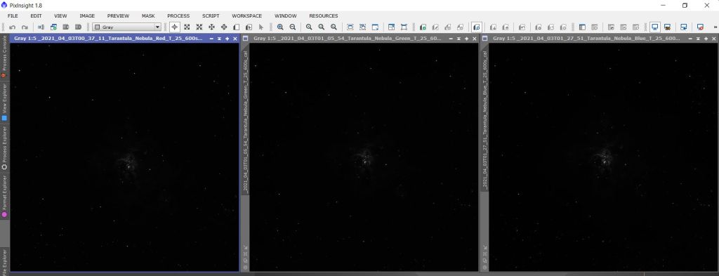 Odobrili su mi zahtjev i ubrzo (za 24 h) poslali LRGB snimke Tarantule, dijamanta južne hemisfere, i to 2 x 10 min za svaki kanal (slika dole). Ispod je dat screenshot snimaka koji su mi dostavili.