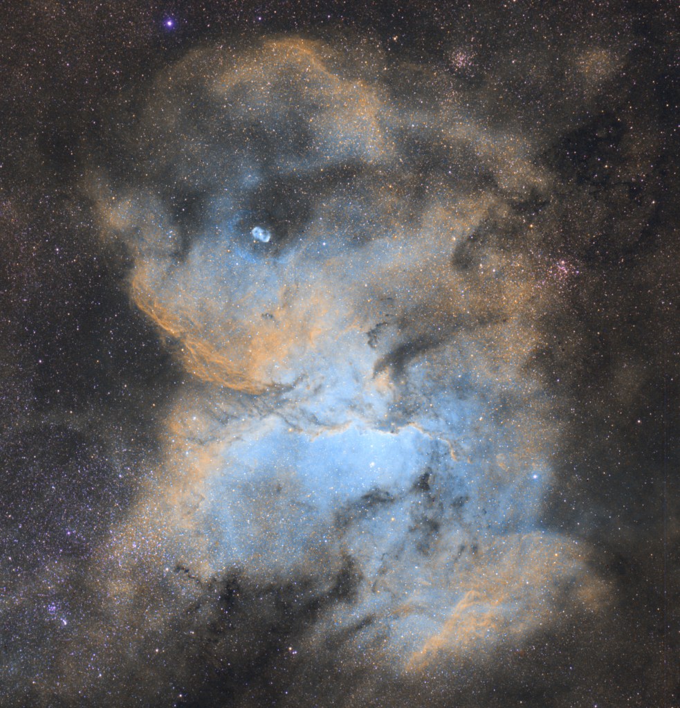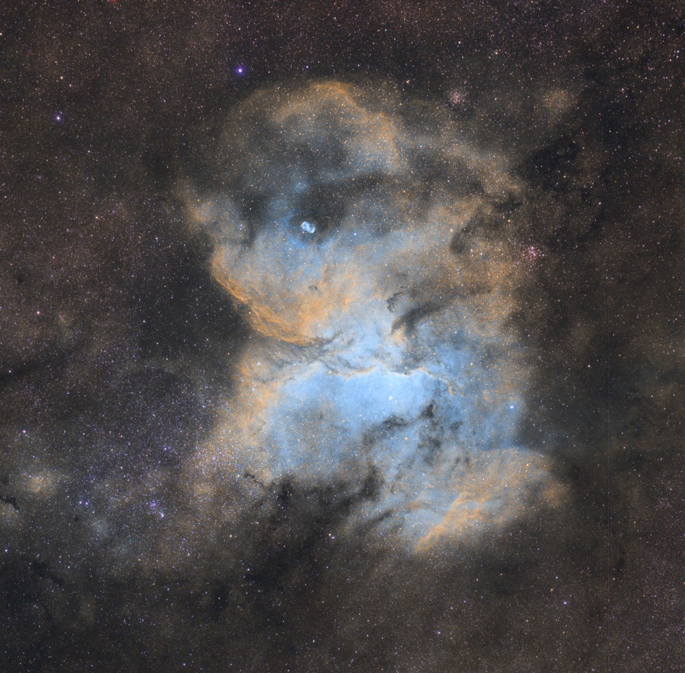 Iz australijske opservatorije Heaven’s Mirror (Yass, North South Wales; 530 m n.v.) su mi danas, po narudžbi, poslali set podataka o maglini “Vijenac” (eng. Rim nebula), snimljenoj uskopojasnim filterima. Snimci su bili: 2 x 10 min sa H-alfa, O-III i S-II filterom, za ukupno 60 min ekspozicije. Teleskop je bio Takahashi FSQ 106-ED (fokus 530 mm, prečnik 106 mm), spojen na kameru FLI PL16803. Obradu sam izvršio u softverima Deep Sky Stacker, Pixinsight i Photoshop. Korišteno je mapiranje SHO tehnikom.