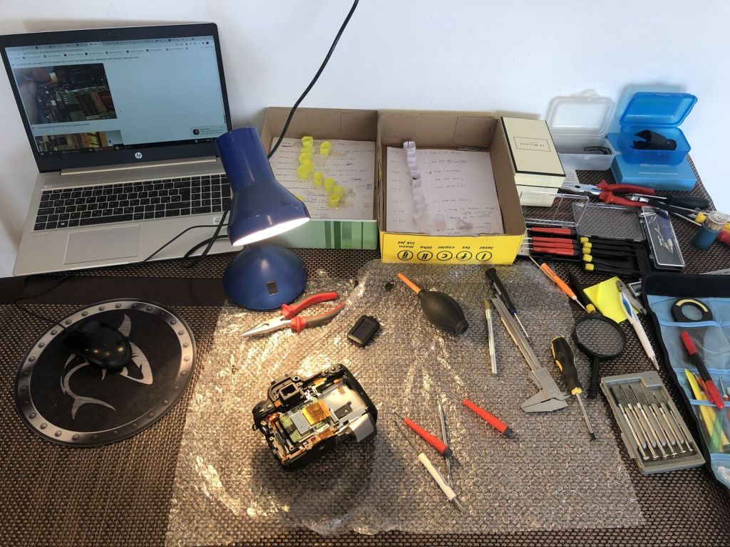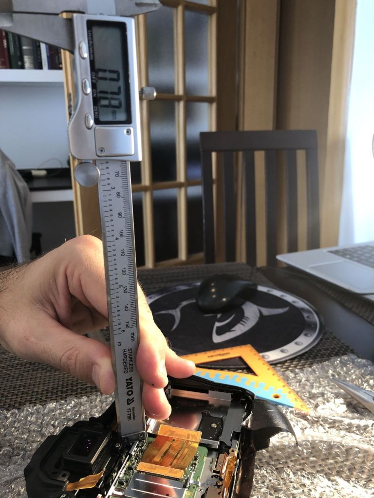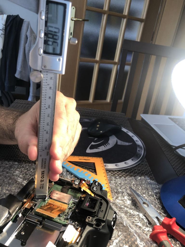 Slijedio sam upute Gary Honisa ali definitivno nije svejedno kada počneš rastavljati aparat, pogotovo kada dođeš do osjetljivih komponenti. Trebalo mi je 4-5 h rada, i malo je reći da mi je pao kamen s leđa kad sam ponovo upalio aparat (Gary navodi da je prvi put nakon modifikacije morao slati aparat na servis; nije se mogao upaliti). Najosjetljiviji dio meni je je bilo mjerenje tačne visine 3 vijka koji drže senzor – mjerio sam 20-tak puta digitalnim mjerilom (1/100 mm tačnost).