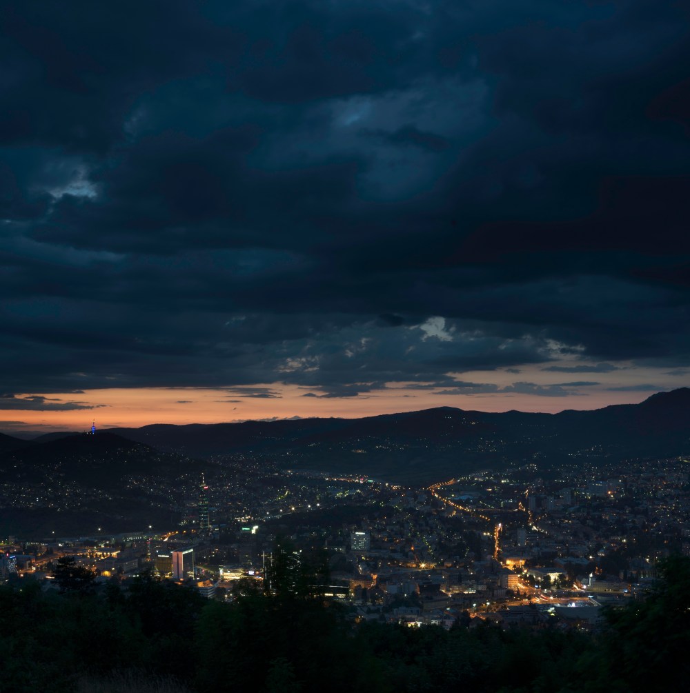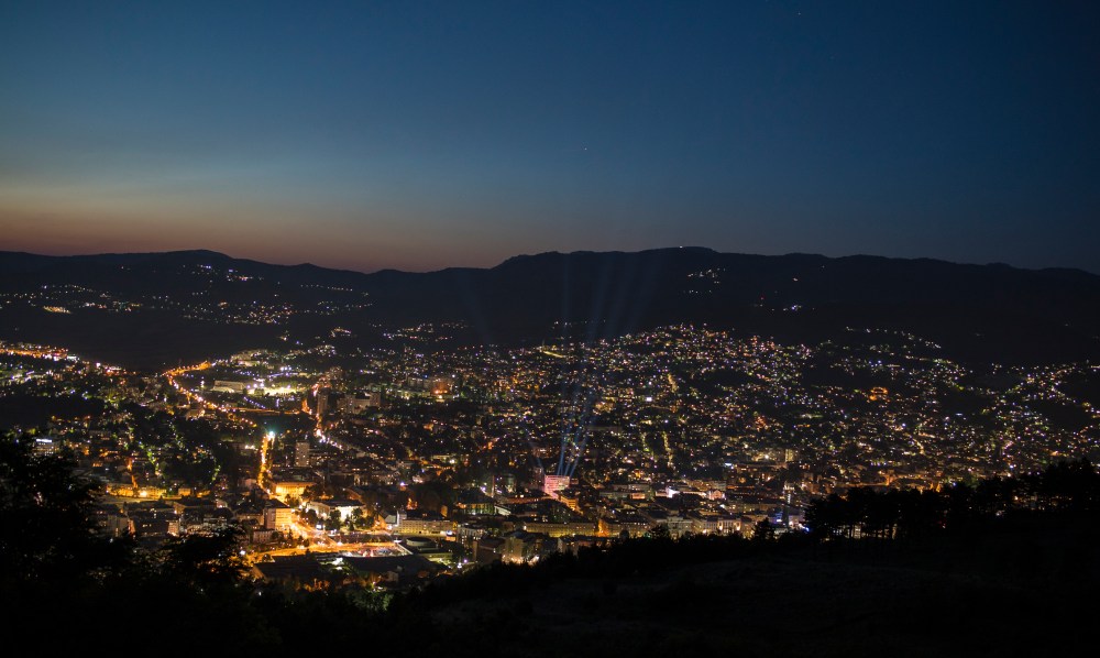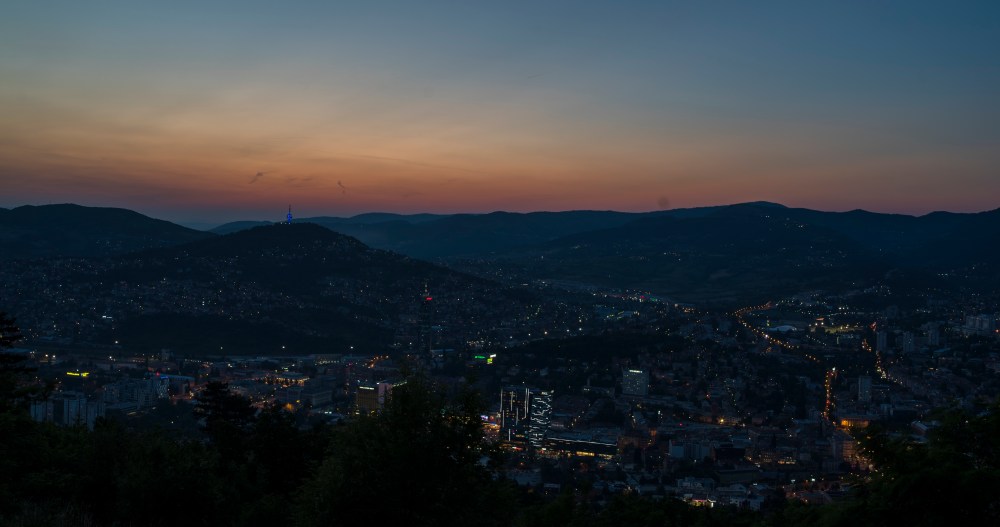 Prethodne tri večeri Džan i ja smo snimali oko Sarajeva sa 2 lokacije, Zlatišta (južna strana) i Žuči (sjeverna strana). Probali smo snimati i sa rejona oko tornja na Humu ali nas je tamo dočekao živopisni čuvar bez majice, koji nam je samo odmahnuo i poslao po ćevape. “Snimajte toranj izvan ograde”, reče on, i vrati se čitanju Šopenhauera. Inače, Šopenhauer je rekao da su ljudi koje ne zanima svemir intelektualno zaostali, ali to nema nikakve veze s ovim tekstom.