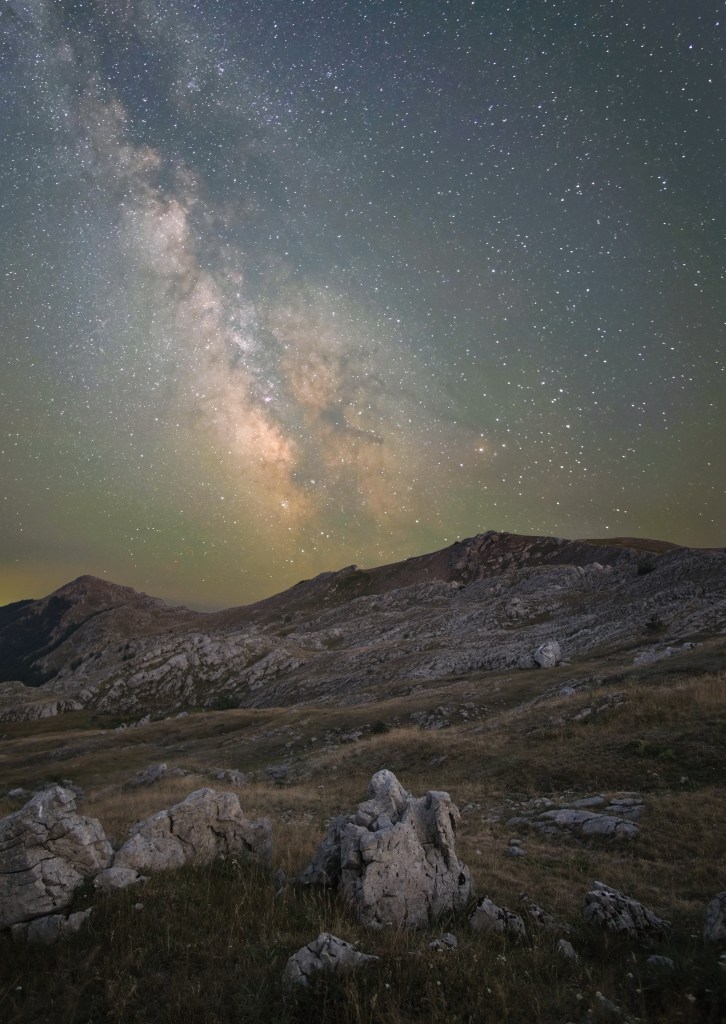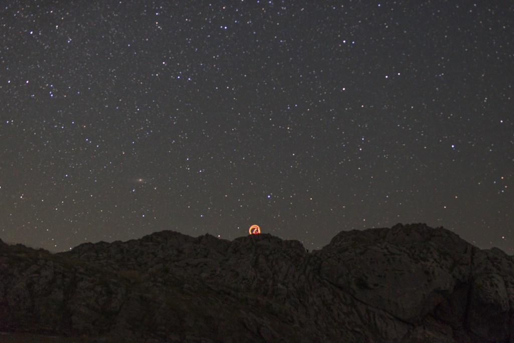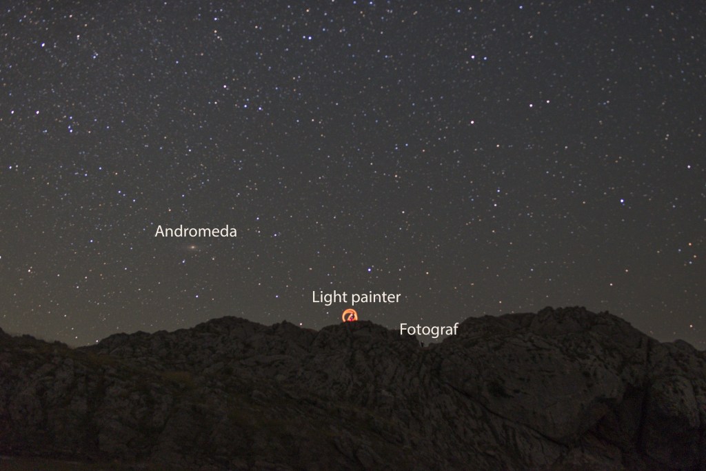 Ove godine smo se, na inicijativu našeg ponajboljeg pejzažnog fotografa Kemala Bećirevića, družili na Visočici, ispod vrha Baturak. Vedro nebo, toplo i bez vjetra, ove godine je vrijeme dobro poslužilo. Na lokaciju smo došli oko 18 h, raspakovali se i malo odmorili. U zlatni sat se pomalo počelo snimati, a kada je nastupila noć, rasporedili smo se na nekoliko lokacija i započeli snimanje neba. U pauzi između snimanja prenosili smo mlađim generacijama naša iskustva iz oblasti noćne pejzažne fotografije. S vremena na vrijeme neko je s okolnih vrhova radio light painting sa zanimljivih vizuelnim efektom (u galeriji slika je i jedna fotografija upravo toga, gdje se u pozadini vidi i galaksija Andromeda). Nadam se da će se ovakva astro druženja omasoviti u Sarajevu. Noći na Visočici su uvijek nezaboravne (Bivak, nekropola stećaka Police).