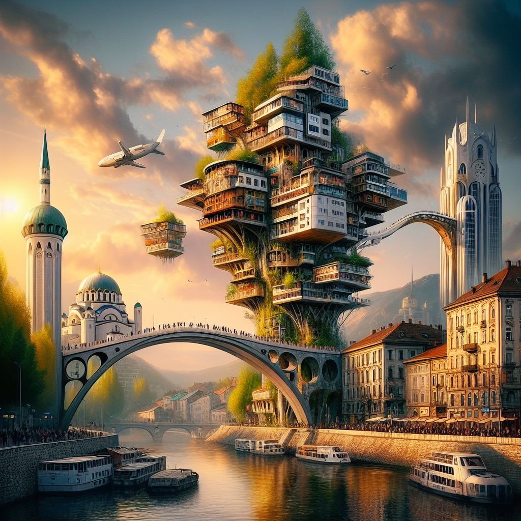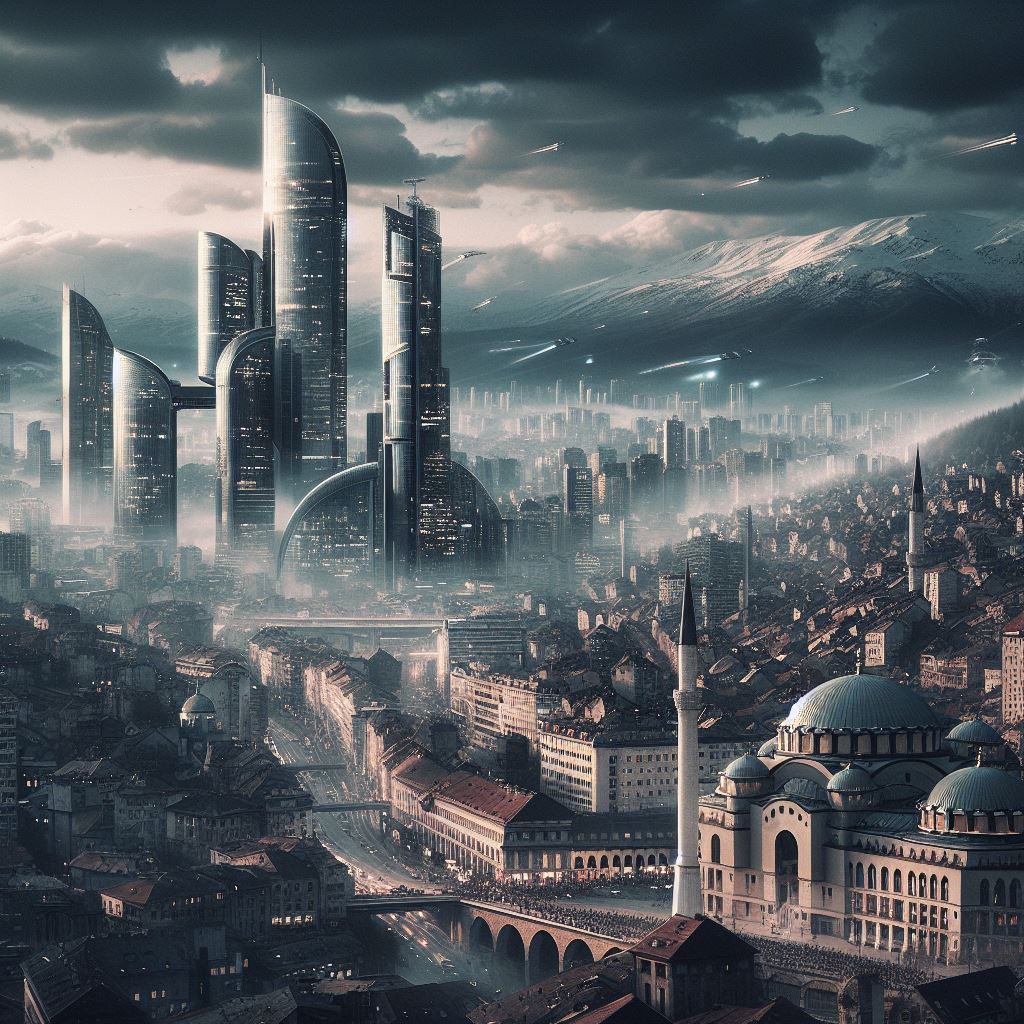 U ovom serijalu isprobao sam kako radi BING Image Creator, koji radi na platformi DALL.E 3. Dosta impresivno izgledaju generisane slike. Tema je “Sarajevo u budućnosti”, pri čemu sam koristio nekoliko “promptova” i stilova (cyberpunk, new retro wave, Dali style, Van Gogh style, futuristic, Art Deco itd). Takođe, jedan dio slika odnosi se na Sarajevo, viđeno kroz Naivnu umjetnost.