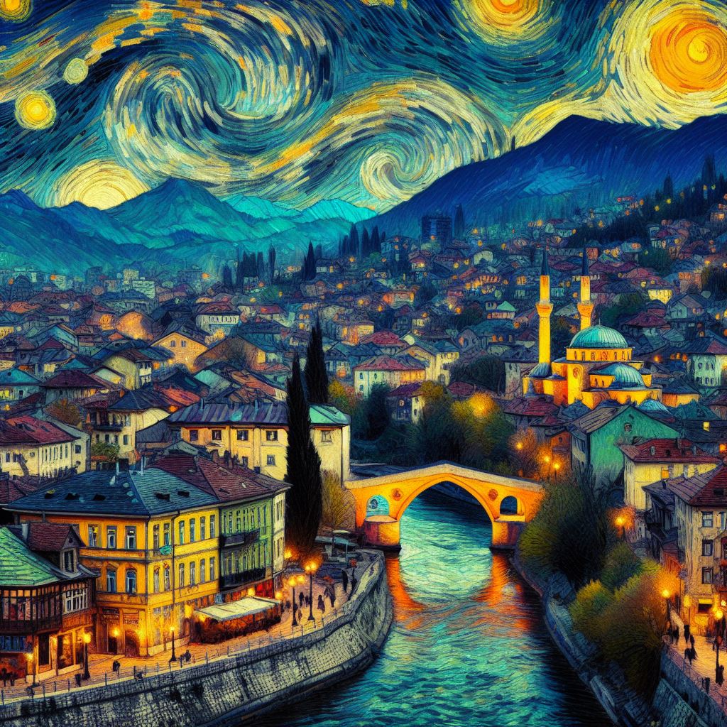Ispod su date slike Sarajeva u stilu Dalija i Van Gogha.