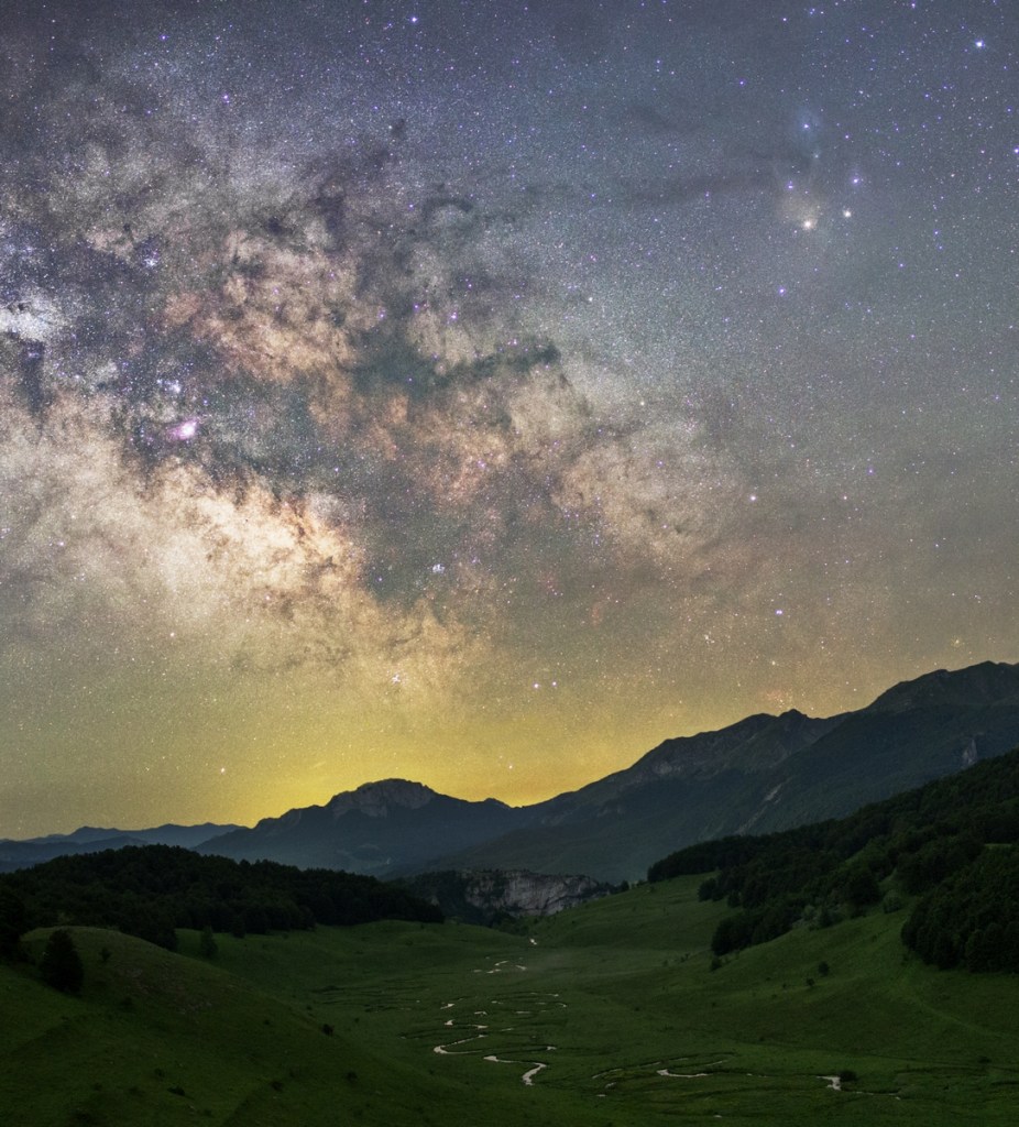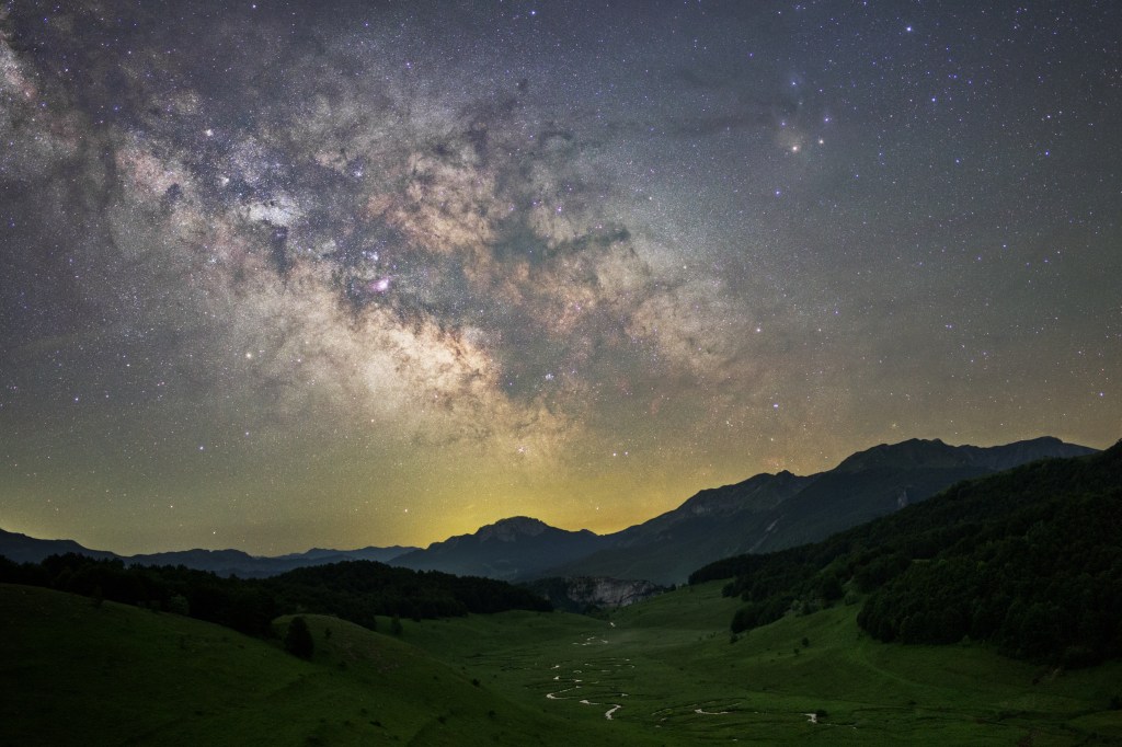 Sinoć nam je Bjelašnica priuštila spektakl. Vedro i toplo vrijeme, bez daška vjetra, uz nevjerovatno čistu atmosferu (čak su i zvijezde vrlo malo svjetlucale). Snimali smo Mliječni put iznad Studenog potoka, sa rejona Gradine, iznad Umoljana (5 min hoda od katuna).