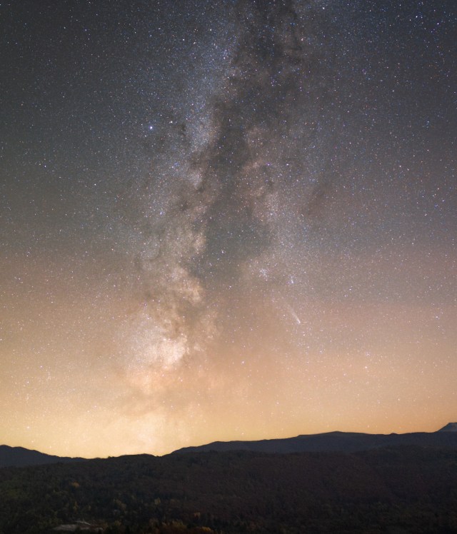 Mliječni put i komet Tsuchinshan–ATLAS, snimljeni 4.11.2024. sa Oblih brda kod Dejčića. Nije bio vidljiv centralni dio naše galaksije.