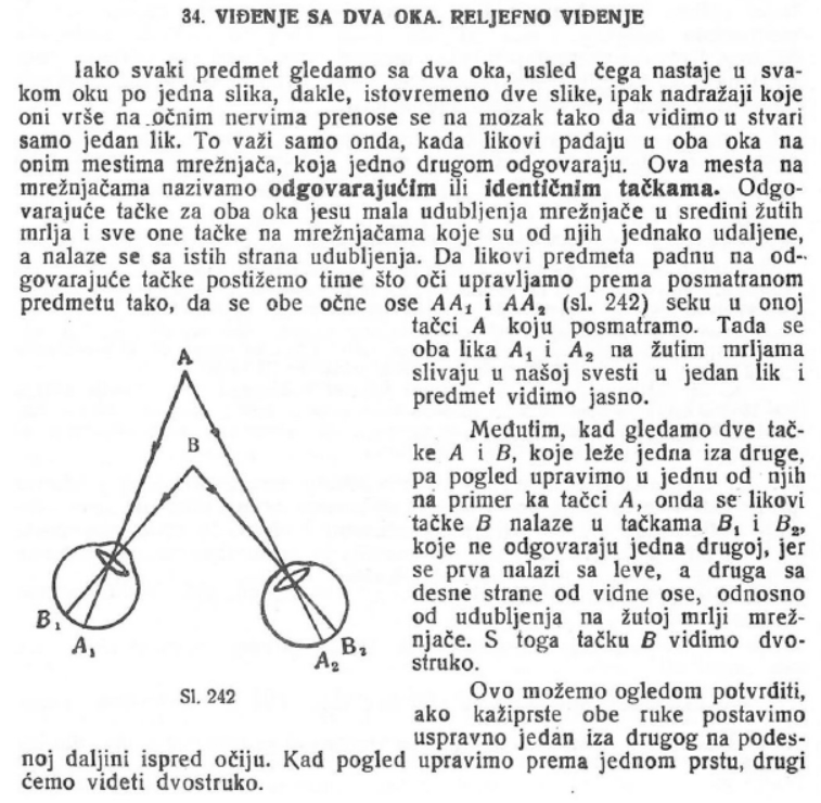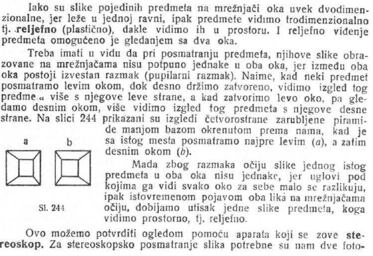 - Dvije očne jabučice daju nam percepciju dubine – uspoređujući dvije slike oči nam omogućuju da procijenimo koliko je neki objekt udaljen.