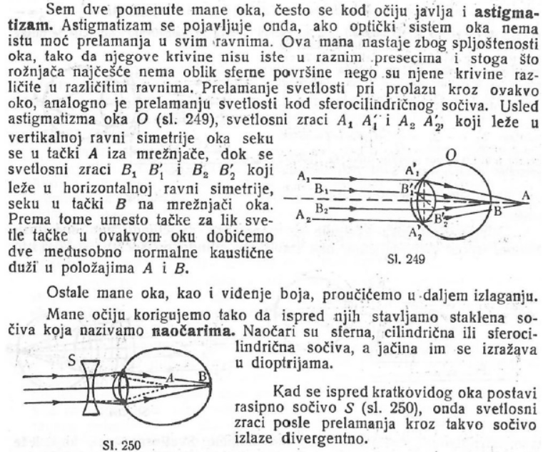 - astigmatizam – refrakcijska vidna amomalija, ametropija uslovljena razlikama u zaobljenosti refraktornih površina, a njena posljedica je loše fokusiranje slike na mrežnici.