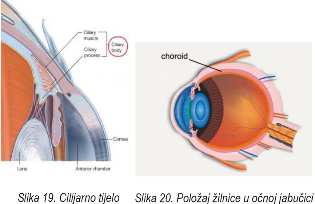 Žilnica ili koroidea (lat. choroidea) smještena je između mrežnice i bjeloočnice i tvori stražnji dio uveje debeo oko 0,5 mm. Glavna je funkcija prehrana vanjskih dijelova mrežnice nutrijentima i kisikom. Izrazito je dobro prokrvljena, ali za razliku od cilijarnog tijela koje je jako inervirano i osjetljivo na bol, bolesti žilnice ne uzrokuju bol (slika 20). Žilnica se sastoji od 4 glavna dijela (lamele ili lista):